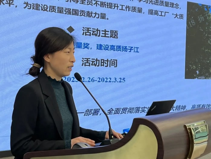 質管部部長馮小雪對第三十五次“質量月”活動進行總結發言